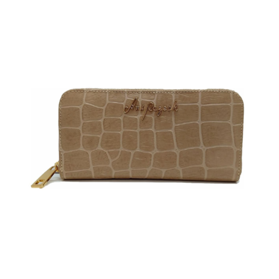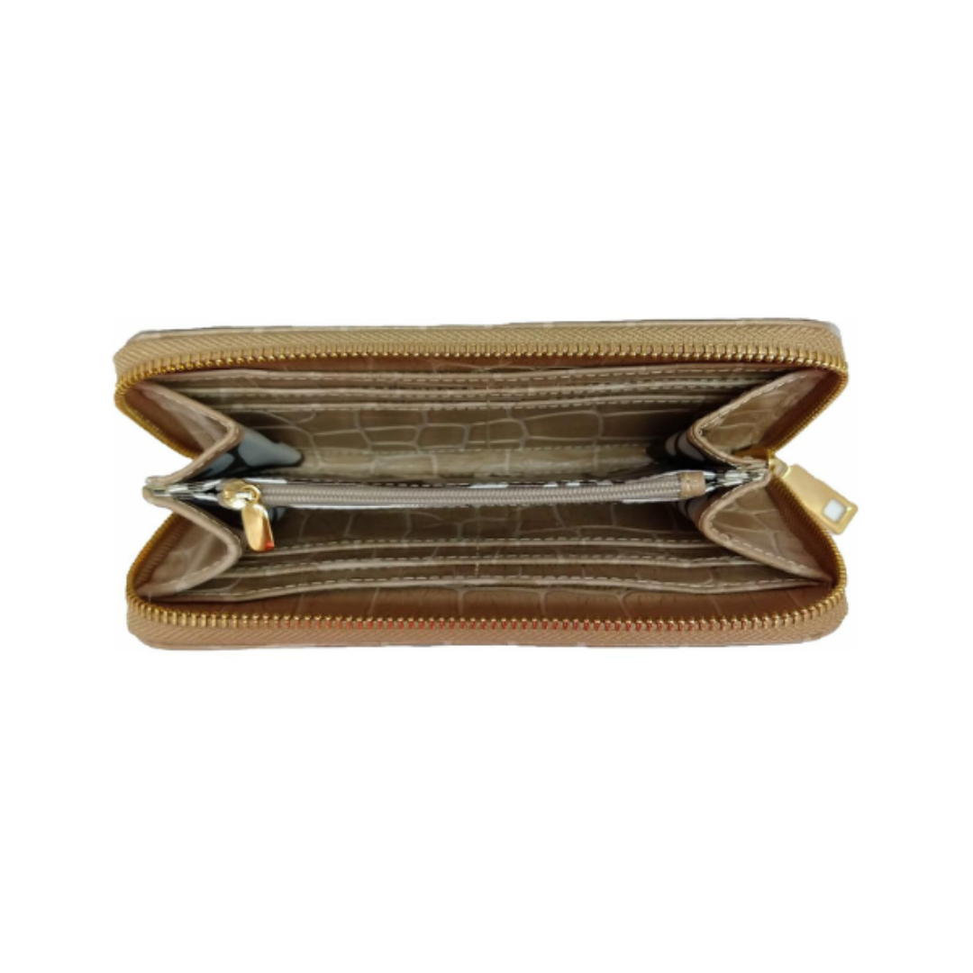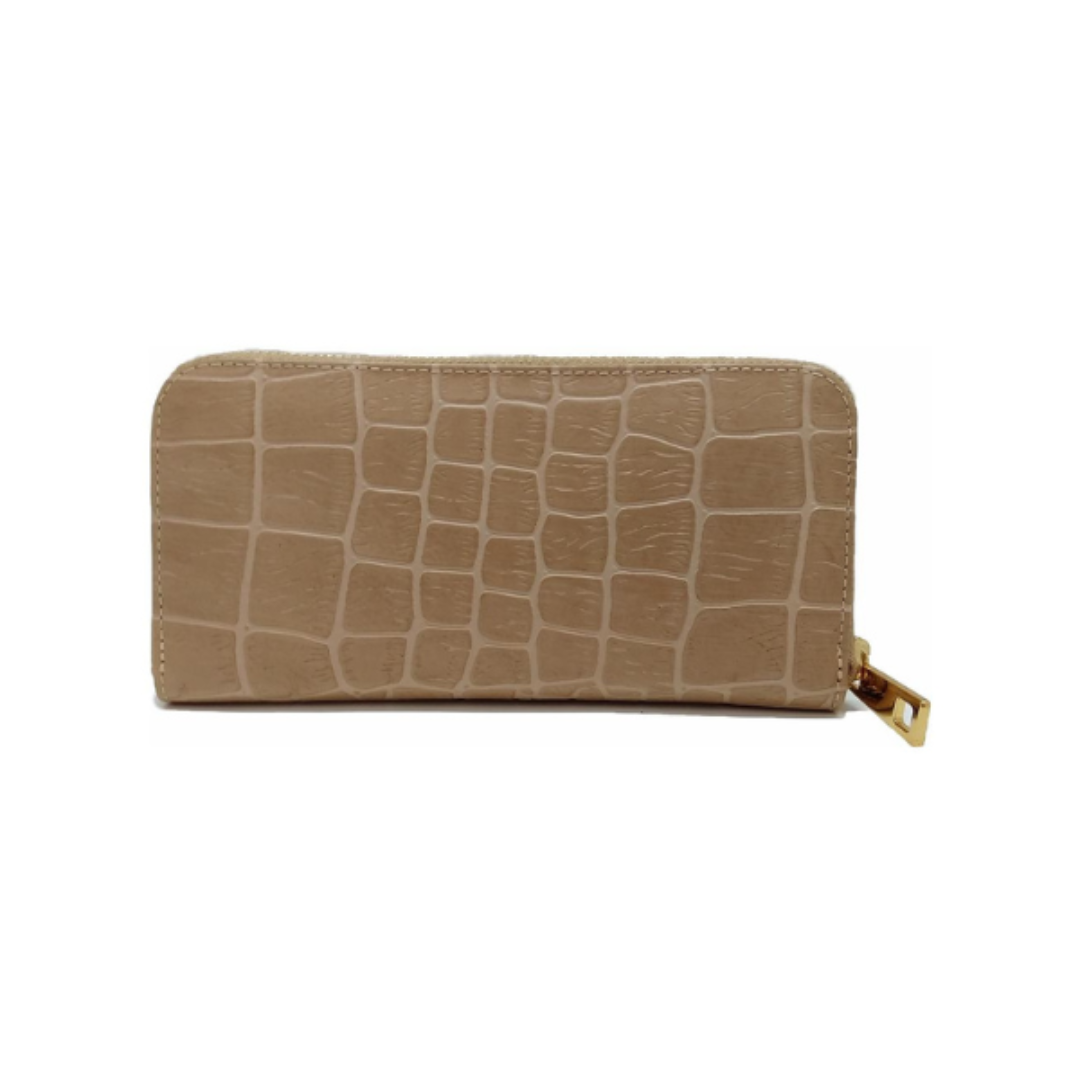 Carteira Feminina Croco Amêndoa Zíper
